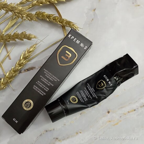 Привет! Сегодня хочу поделиться мнением об одном из самых популярных кремов от марки Мастерская Олеси Мустаевой. Итак, Крем #3 для любого типа кожи с нарушенным гидролипидным балансом, 43 мл. Начну традиционно. Упаковка добротная, крем в жестяной тубе. Вся информация о креме и его производителе есть как на коробочке, так и на тубе. Изначально горлышко тубы было запечатано, но я забыла сфотографировать. Сам крем белого цвета, почти ничем не пахнет. Плотная, но в тоже время лёгкая консистенция, которая хорошо распределяется по коже, слегка её охлаждая. Впитывается крем хорошо, но не сразу, так как забеливается. Ничего страшного в этом нет, но лично для меня это минус, я не люблю такой эффект. Кожу приятно обволакивает, оставляет небольшое ощущение липкости, которое проходит минуты через три — кожа становится бархатистой и приятной на ощупь. Чувства парника и/или пленки не даёт. Производитель нам обещает восстановление защитного барьера кожи, сокращение потери влаги, длительное увлажнение