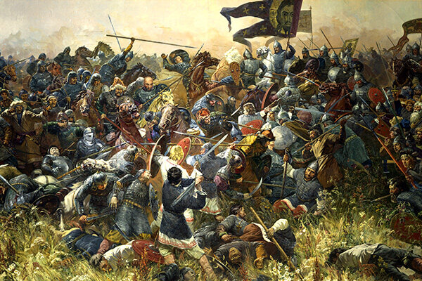 В туманном свете зари, когда первые лучи солнца ласкали бескрайние степи Золотой Орды, произошло событие, которое впечатлило и оставило глубокий след в истории Руси — Битва на Куликовом поле. Это было 8 сентября 1380 года, когда военные рои сблизились в противостоянии, которое решало судьбу народа. Дмитрий Донской, князь Московии, собрал многонациональное войско, стремясь противостоять Тохтамыше, великому хану Золотой Орды. Он взывал к русским князьям объединить усилия в борьбе за свободу и независимость от монголо-татарского ига. Куликово поле, названное по близлежащему поселению, стало ареной, где сошлись армии, представляющие два разных мира. На одной стороне были московские и тверские воины, а также союзники из других русских княжеств, готовые отстаивать свою землю и веру. На другой стороне были ордынские войска, стремившиеся удержать свое господство. Бой начался со стрельбы из луков и атаки конницы. Лесные дубы служили укрытием для дружинников, тогда как монгольские всадники стрем
