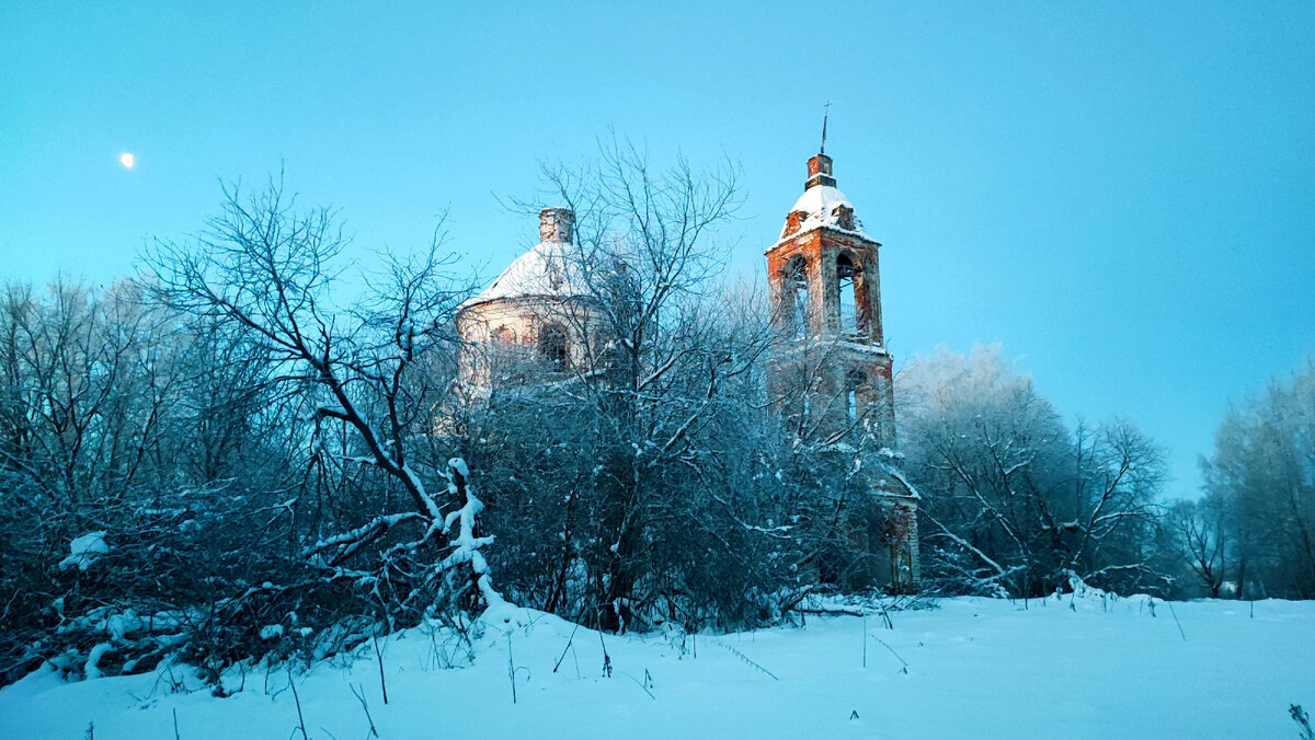 Отправимся в красивую заброшенную церковь, о которой удалось найти лишь скудную информацию Село Пожарское в 1585 году было передано князем Иваном Михайловичем Глинским Троице-Сергиевому монастырю. Уже в то время существовала церковь Покрова Пресвятой Богородицы. На ее месте в 1729 году была построена еще одна деревянная церковь. В 1813 году вместо деревянной церкви построили каменную. В советские годы она была закрыта. Сегодня церковь прячется среди деревьев, на удаленном расстоянии от дороги, поэтому мне приходится долго идти по сугробам, чтобы попасть внутрь. В темноте алтарной части расположился крест, он поблескивает в рассветных лучах. На полу сохранилась мозаика. А на стенах все еще можно разглядеть остатки фресок. Местные жители принесли сюда иконы. Редактируя получившиеся фотографии, на одном из фото я заметила, что росписи сложились в испуганную морду кота: два глаза, нос, рот… и цветок на лбу. Не знаю, что было изображено там в оригинале, но все, кому я показывала