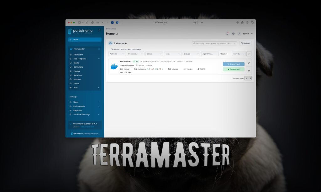 В операционной системе TOS от TerraMaster очень скудный функционал управления контейнерами Docker и Portainer помогает расширить этот функционал. Portainer – это платформа с открытым исходным кодом для управления контейнерами, которая упрощает развертывание, масштабирование и управление контейнеризированными приложениями в Docker. Она предоставляет графический интерфейс пользователя (GUI), позволяющий администраторам и разработчикам легко взаимодействовать и управлять средами Docker, включая создание, удаление и запуск контейнеров, а также настройку сетей, томов и ресурсов. С помощью Portainer можно управлять несколькими кластерами Docker одновременно и получать аналитику производительности в реальном времени. Для начала в центре пакетов TOS нужно установить сам Docker Manager Далее в том же центре пакетов находим сам Portainer и устанавливаем его После установки подождите минутку и открывайте веб портал portainer. логин и пароль по умолчанию admin Если после входа система попросит изм
