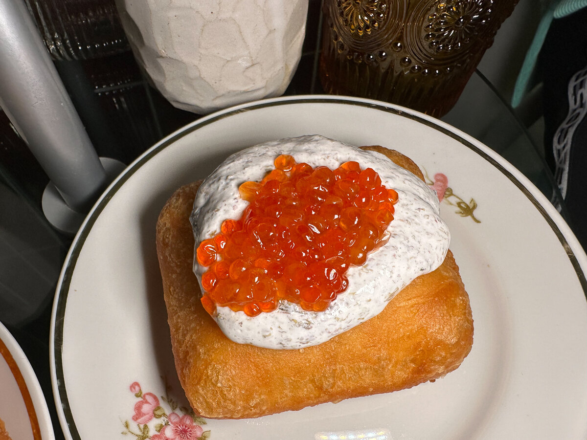 Постоять в очереди за первыми пышками с красной икрой по французской рецептуре из новой пончиковой кофейни «Бенье»