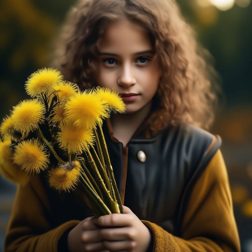 Дениска протянул Майе яркие пушистые золотые одуванчики.