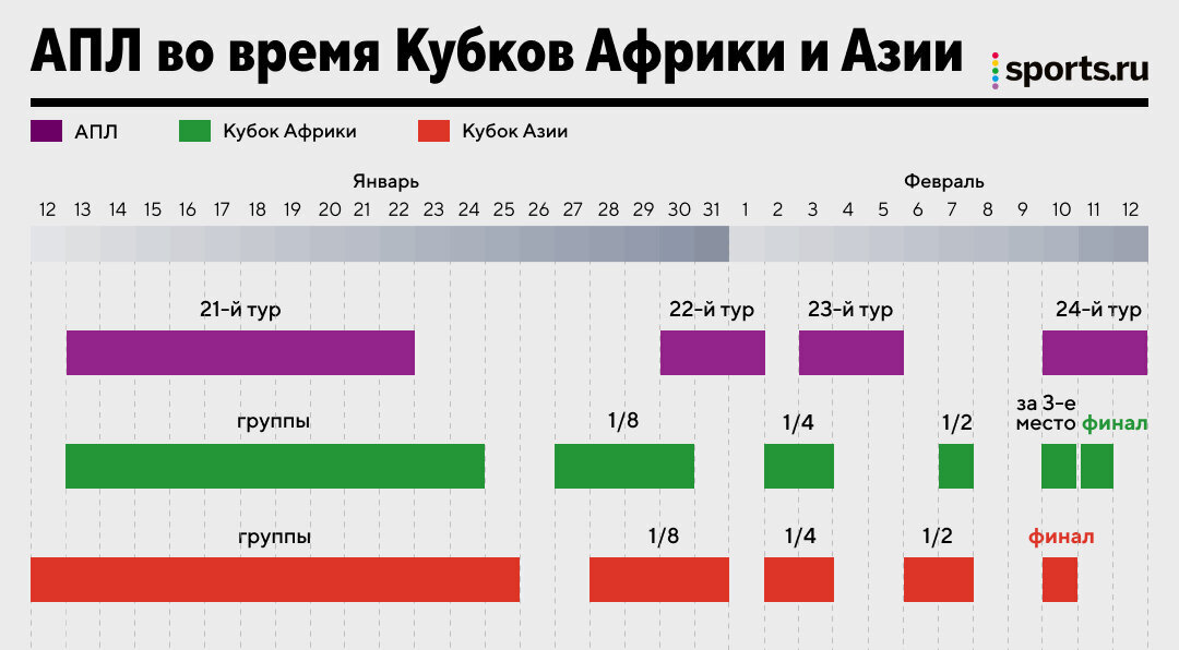 ● Кубок Африки: с 13 января по 11 февраля;
