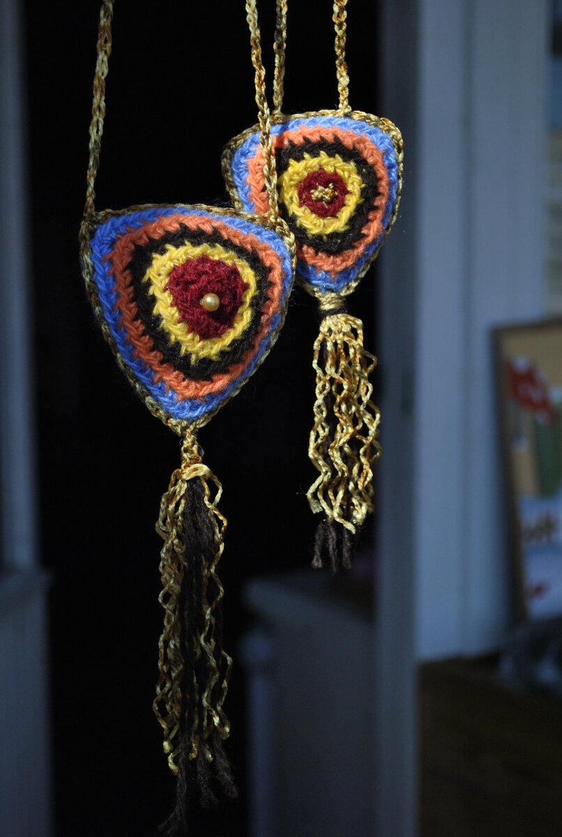 Теперь я покупаю НОВУЮ пряжу Специально для того, чтобы вязать декоративные вещички! Мне нравится Декор! И причем - Цветной. Надоело жить в бледном и однотонном. Хочу ЦВЕТА. Поэтому, очередная идея - Декоративная подвеска в интерьер (а может - в автомобиль), в которой каждый ряд вяжется из нового цвета. В середине - бусинка. Сайт немного гасит краски.