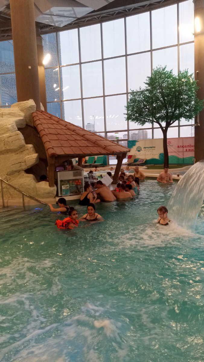 Продолжаю рассказ о термальном комплексе ЛетоЛето. Поплавать в закрытом бассейне толком не удалось, детвора плюхалась прямо перед носом. Все места с гейзерами были заняты. Казалось бы-есть специальная зона аквапарка, там полно горок и развлечений, пусть бы они там плескались. Услышала разговор двух мужчин, один второму говорил, что его 8-летнему сыну там маленькие горки неинтересны, а на большие ростом не проходит, поэтому рвется сюда. Я думаю, что дело не только в этом, родителям самим хочется расслабиться, а в аквапарке такой возможности нет, вот и тащат сюда детей.