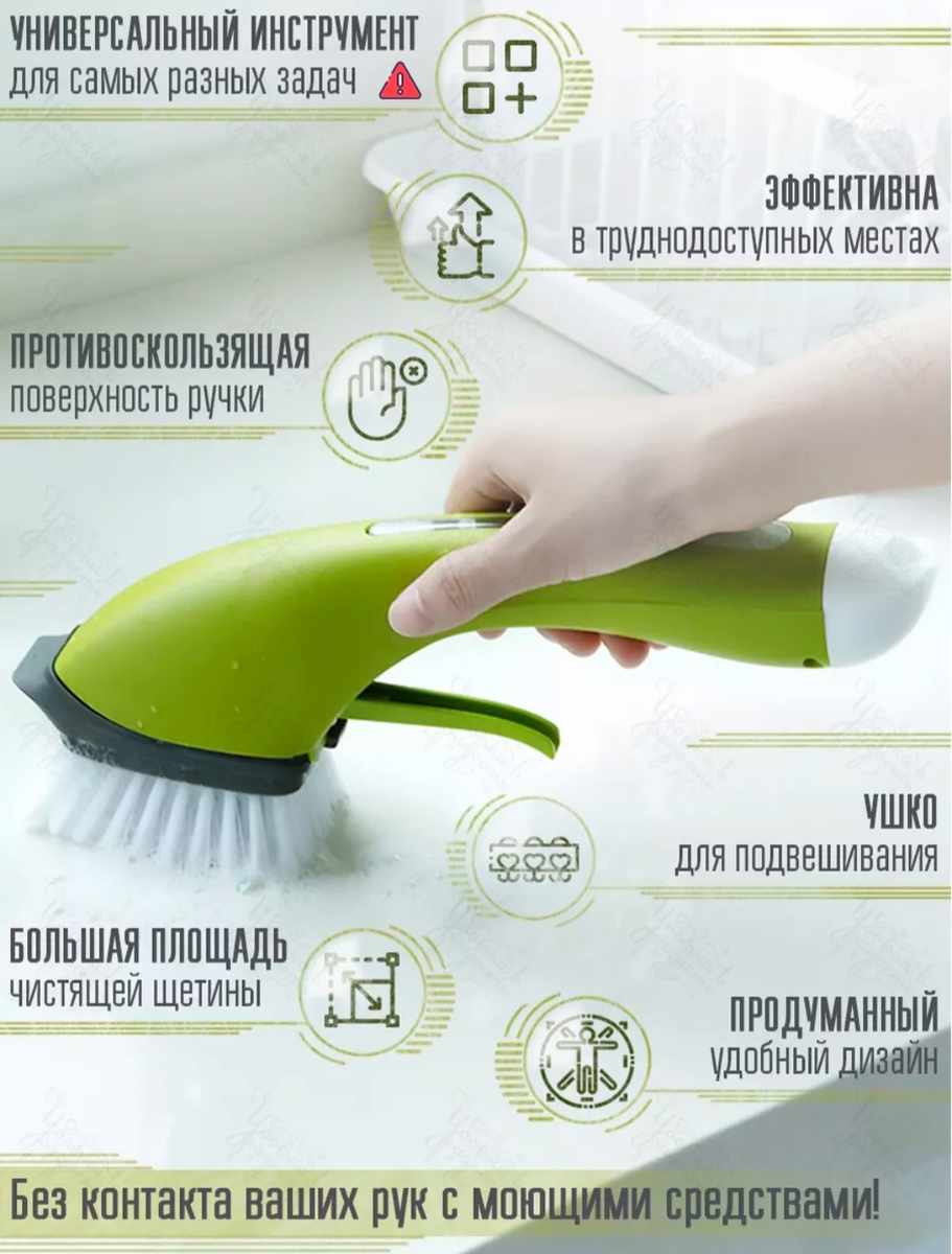 Незаменимой помощницей в хозяйстве для каждой женщины станет эта удивительная щетка. Добро пожаловать в мир удобства и эффективности уборки! Ручная щетка для уборки с дозатором и распылителем - идеальный аксессуар для уборки вашего дома и кухни. Она отлично справится с загрязнениями, благодаря густой щетине, а Ваши руки останутся в чистоте, избегая контакта с моющим средством! Отлично подойдет как для мытья посуды, так и для чистки ковров, сантехники и уборке в труднодоступных местах. Благодаря своей универсальности, она станет вашим надежным помощником в уборке всех поверхностей. Независимо от того, нужно ли вам очистить пол, вымыть посуду, удалить пыль с одежды или освежить ковер – эта ручная щетка безупречно справится с любой задачей. Ручная щетка может стать прекрасной альтернативой электрической беспроводной щетке для уборки дома. Встроенный дозатор и распылитель позволяют эффективно наносить моющее средство на поверхность, обеспечивая максимальное устранение грязи и пятен. Благо