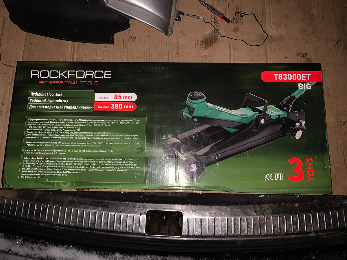 И опять рубрика «мой инструмент» продолжим мы ее моим домкратом который называется ROCKFORCE. рассмотрим его плюсы и минусы, а также разберемся как выбрать Гидравлический домкрат под свои цели. Так выглядит коробка с домкратом ПЛЮСЫ: -домкрат достаточно не тяжелый всего 5 кг -удобный в использовании -грузоподъемность 3 тонны -металические колесики на подшипниках МИНУСЫ -не крепится накладка на подъемную часть по моему на этом минусы заканчиваются, стол это домкрат всего 30$, и эти деньги он полностью оправдывает. При покупке гидравлических домкратов стоит обратить внимание на ряд мелочей, таких как: материал из которого изготовлены колесики, высота подъема, и высота в опущенном состоянии. всем спасибо, выбирайте себе качественный инвентарь.