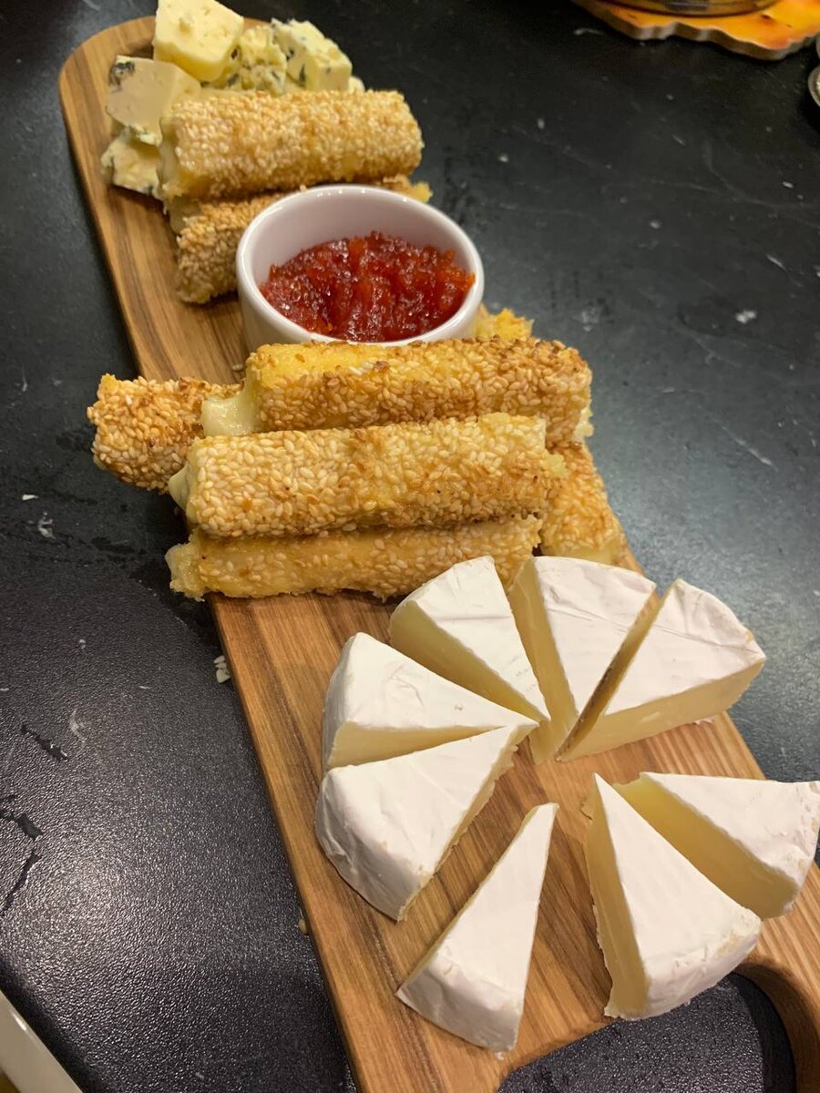 Привет, друзья! Осенью в пору заготовок сделала джем из болгарского перца с дальним прицелом. Задумала подать его на сырной тарелке на праздник. Рецепт джема подсмотрела на канале Коллекция рецептов. Очень достойный, готовить буду всегда. С сыром идет на ура. К нему подавала сыр Бри с белой плесенью, сыр с голубой плесенью, чеддер и жаренный сыр, по-моему голландский. Вот так эффектно это смотрится на столе Жаренный сыр можно делать из сулугуни или полутвердого сыра. Яйца нужно взболтать вилкой, добавить 1ст.л. муки. Сыр нарезать длинными брусочками, окунуть сначала в муку, затем в яйца и в сухари, а в моем случае в кунжут. Поставить в морозилку. И обжарить на небольшом огне в растительном масле не размораживая. Приятного аппетита.