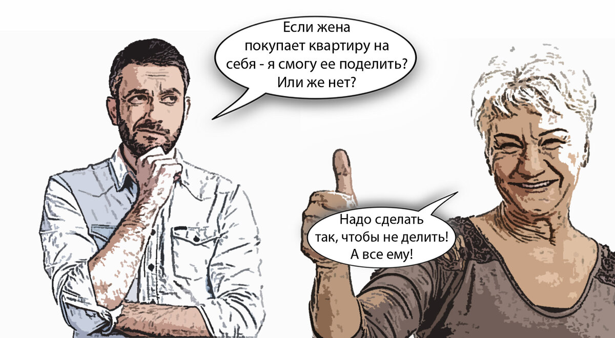 - Как нам грамотно оформить покупку квартиры, чтобы она за мужем была? Ну, чтобы не делилась с женой, вдруг что? – оглашает вопрос женщина.