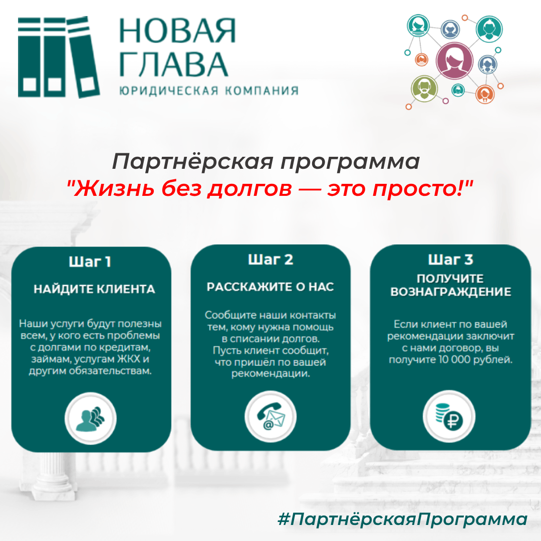 А вы уже знаете, как заработать, помогая близким списать долги? Рассказываем, как работает наша партнёрская программа «Жизнь без долгов — это просто!»