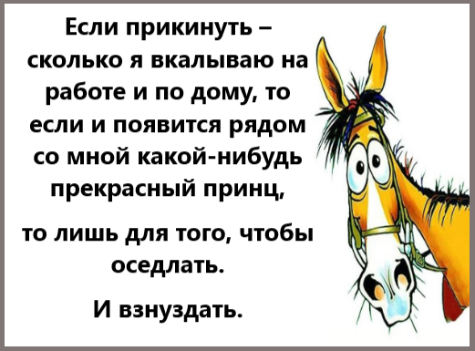 Дорогие мои друзья и читатели, вот и закончились для новогодние каникулы, завтра на работу выходить... Кандалы начищены, радостная улыбка до ушей отрепетирована, надеюсь, коллеги не испугаются... Впрочем, навряд ли у кого из коллег будет состояние радостнее, чем у меня. Потому что так повелось у нас на Руси, что... Да сами вы прекрасно знаете - что и как водится у нас на Руси. Особенно у нас, у прекрасных женщин, созданных исключительно для того, чтобы на балах блистать, или уж на крайняк у елочки канкан с такими же прекрасными дамами на радость окружающим отплясывать... Но работа - это дело серьезное. И лучше уж сохранять серьезность уже с момента зачисления вас на вожделенную должность И если что, на работе нужно соблюсти все требования и все правила, написанные каким-то врагом народа для сотрудников. Для того, чтобы расслабиться, существует ваша квартира На работу мы ходим для того, чтобы заработать денежек. И если вам денежек хочется много, то и работать вы должны больше. Хотя... н