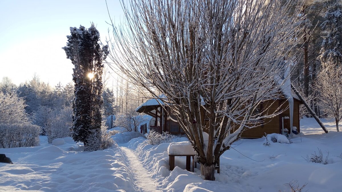 В нашей лесной деревне, наступили холода. Уже больше недели - жесткие морозы. Столбик градусника днем не поднимается выше - 25, а ночью, кто его знает - сколько... "Это - не такой уж и страшный мороз,"- скажут мне те, кому за 50. "Вот в детстве нашем, помнится..." Конечно, в детстве все было сильнее и лучше. Но все-таки, ради справедливости, стоит заметить, что такие морозы бывали не часто и длились они всего пару-тройку дней, не больше. Помню, в школу можно было не приходить, когда мороз был 30 градусов. Мы так и ждали этих прекрасных дней, чтобы вместо школы отправиться гулять... Носы - красные, ноги мерзнут в модных сапожках, а мы быстро-быстро топаем, чтоб согреть отмерзшие пальцы. И бежим с санками на горку! Но такие счастливые дни, когда можно было не ходить в школу, бывали не каждую зиму. В этом году, мороз как ударил под Новый год, так и задержался до Рождества и отступать не собирается. Дом промерз насквозь, печку топить приходится 2 раза в день, но даже сейчас, когда печ