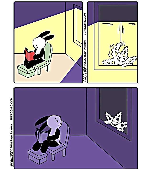 Сегодня почитаем истории про безумную зиму в мире кролика BUNICOMIC. Комиксы про кролика - оптимиста, его крутого батю, живые продукты, монстров всех мастей создаёт Райан Пейджлоу (Ryan Pagelow). Хотя они нарисованы в стиле детского мультика, но шутки для читателей постарше (порой, это даже чёрный юмор ). Работы художника из Чикаго в переводе не нуждаются. Их автор - без слов способен привлечь внимание читателей из разных стран. Давайте же скорее окунёмся в безумно весёлый выдуманный мир!