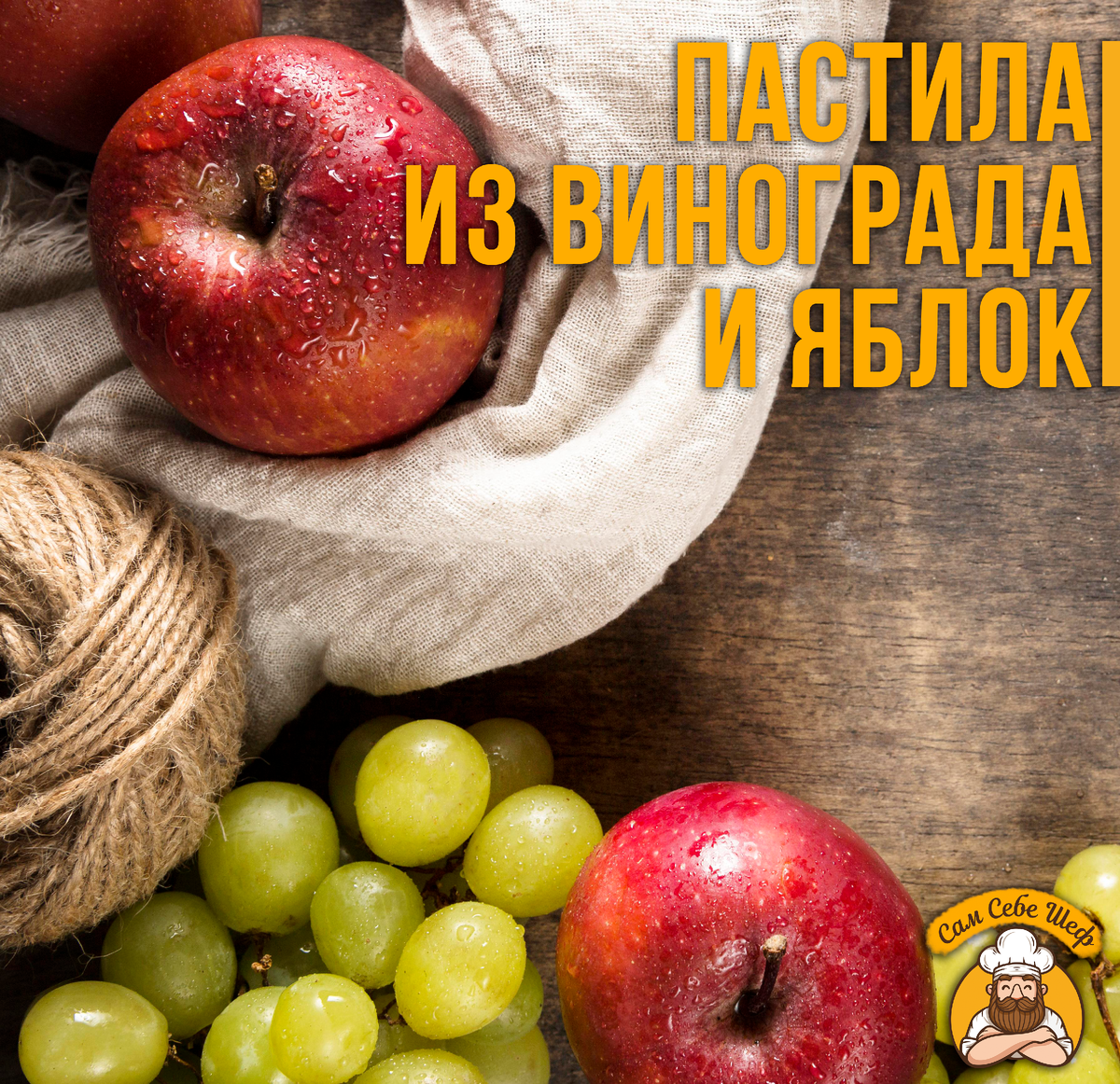 Пастила из винограда и яблок станет отличным перекусом, её легко готовить и на вкус она просто диво. Не будем томить вас описанием этого лакомства, прейдём к готовке! Ингредиенты: 1. Яблоки — из яблок должно получиться около 500 грамм пюре, поэтому берём 650-700 грамм яблок 2. Виноград — будет достаточно 400 грамм винограда, сорт выбирайте на свой вкус, подойдёт любой. Главное чтобы виноград был без косточек, иначе они будут и в пастиле, хотя, если это вас не заботит, можете попробовать и с косточками! Обязательно поделитесь результатом такого эксперимента. Процесс приготовления: 1. Моем и вырезаем сердцевины у яблок, запекаем в духовке до мягкости, на этой уйдёт около 20 минут, при 180° С 2. Моем и перебираем виноград от веточек 3. Закидываем яблоки с виноградом в блендер и измельчаем однородную массу, виноград содержит достаточно много воды поэтому можете не добавлять её отдельно. 4. Полученную массу выливаем в заранее подготовленные поддоны, советуем смазать их капелькой масла. Е