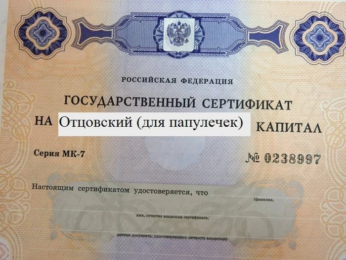 Меня спрашивают: «Что такое отцовский капитал?» Хочу напомнить, что право на получение материнского капитала по - прежнему есть только у женщин - гражданок России, которые родили первого, второго, третьего ребенка или последующих детей. Но ситуации в жизни бывают разные, поэтому получить матпомощь от государства может и отец детей, например, в случае, если женщина умерла или признана умершей, либо если женщина лишена родительских прав. Отец может получить субсидию и в том случае, если мать оставила ребёнка в больнице и дала согласие на усыновление - к этой ситуации относится суррогатное материнство. Юридического термина «отцовский капитал» в Российском законодательстве не существует, но это совершенно не означает, что мужчины, которые самостоятельно воспитывают детей, не могут претендовать на такую выплату. Именно получение материнского капитала отцом в быту называют «ОТЦОВСКИЙ КАПИТАЛ». Очень важный момент: если семья успела реализовать мат капитал до смерти матери или лишения её