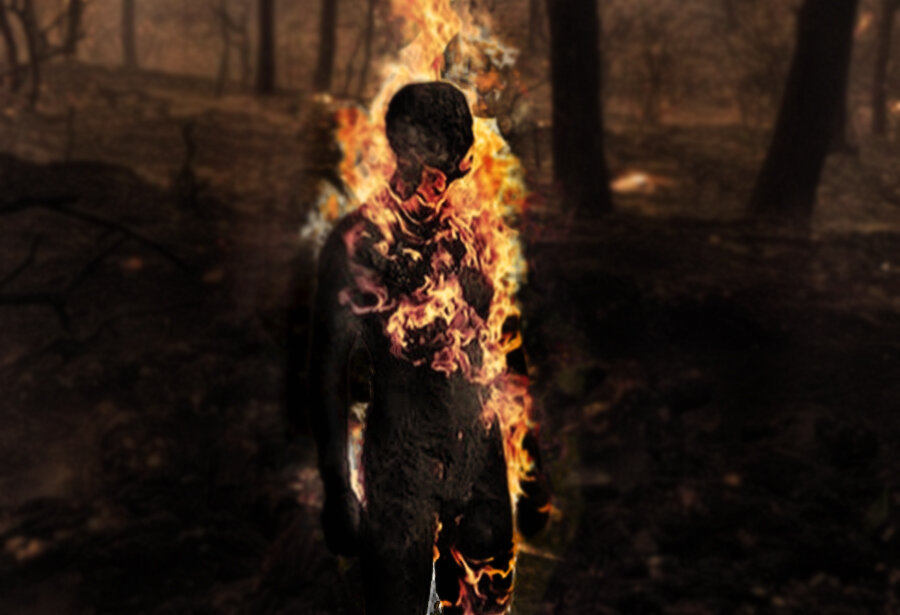 Прежде чем выключить камеру, Миша услышал непонятные возгласы и повернулся в сторону костра. Он увидел как из огня поднялась обгоревшая рука, за ней вторая. Руки тянулись к небу, а затем мертвец перевернулся на бок. Прерывистыми, ломанными движениями он вырвался из объятий пламени, пока люди словно заворожённые стояли на месте и не двигались. Не двигался и Миша, застыв от увиденного ужаса.