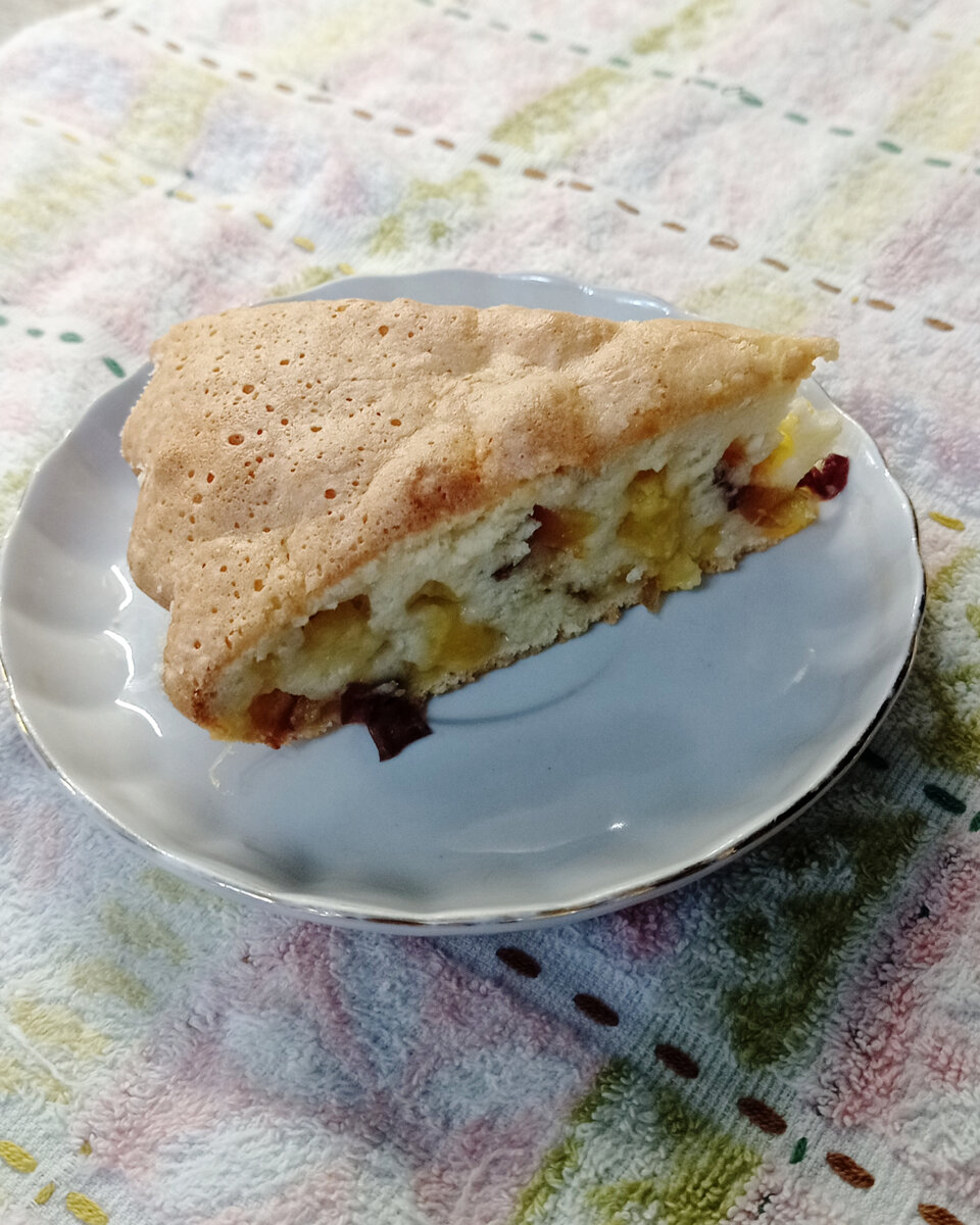 Здравствуйте, дорогие друзья, представляю вашему вниманию самый простой пирог к чаю, готовится он всего из четырёх ингредиентов: 4 яйца 1 стакан сахара 1 стакан муки Ягоды - 300 гр. Ягоды можно брать любые, в моём случае, сегодня пирог готовлю с персиками, ещё с лета заморозила. Также готовила данный пирог с яблоками и грушей, можете брать любые ягоды, которые есть дома. (Слива, курага, изюм, вишня) Итак начнем, разбиваем в миску яйца, добавляем сахар и взбиваем хорошо миксером, до состояния растворения сахара. Затем добавляем муку и ещё раз хорошо пробиваем миксером. Вот и наше тесто готово. Готовим начинку, в моём случае я нарезаю персики небольшим кубиком. Размер ягод регулируйте сами, как вам нравится. И аккуратно вмешиваем ложкой ягоды в тесто. Подготовляем форму для выпекани, смазываем её хорошенько сливочным маслом, и присыпаем манкой, это для того чтобы наш пирог не прилип, и получилась хрустящая корочка. Выливаем пирог в форму и ставим в духовку на 180 градусов - 45 мину