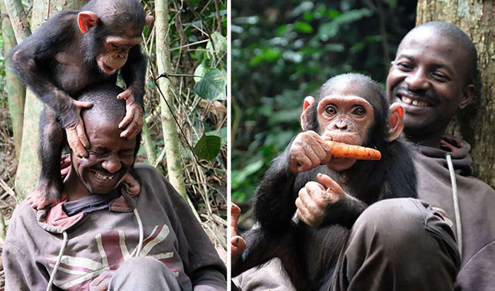 Этого парня зовут Сандра Анаклет, он родом из Камеруна, страны, где находится приют. Кроме него в приюте также работают и другие работники, однако со временем стало ясно, что именно Сандра лучше всего справляется с нелегкой задачей — первой встречей маленьких обезьян в приюте. Животные в стрессе часто непредсказуемы, даже агрессивны. Это дикие животные и так же, как разные люди, обезьяны также обладают разным характером и по-разному реагируют на обстоятельства, поэтому суметь найти подход к каждому новому животному — это действительно можно назвать особым даром.