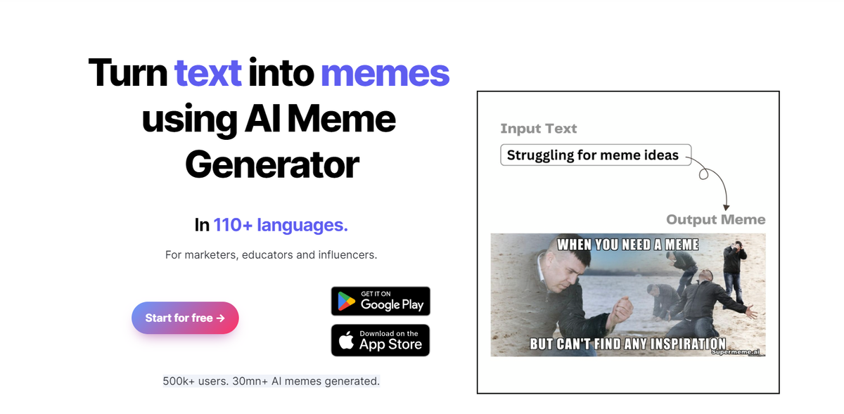 SuperMEME - это генератор мемов. Вам больше не надо пользоваться фотошопом. Регистрация простая и бесплатная, можно пользоваться как на пк так и с телефона. Понятный интерфейс и простое использование - выбираете картинку и создаёте текст, а генератор сам уже наложит и сохранит вам мем Наш телеграмм канал t.me/neurofutura