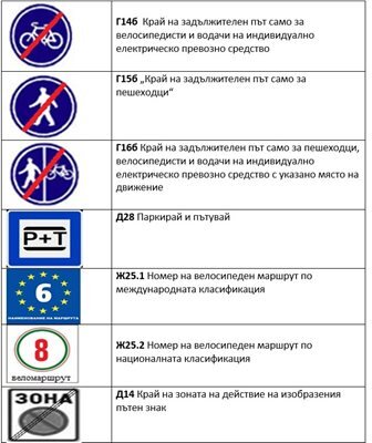 В целях повышения безопасности дорожного движения обновленный регламент синхронизирует современные европейские стандарты фиксированных дорожных знаков. Определены требования к светоотражению в ночное время, стандарту цветности и коэффициентам яркости пленки. Также введены 6 новых дорожных знаков из разных групп. В группе «Г» появились новые знаки: Г14б «Конец дороги, обязательной только для велосипедистов», Г15б «Конец дороги, обязательной только для пешеходов» и Г16б «Конец дороги, обязательной только для пешеходов и велосипедистов с указанием места». движения». В группе «Д» введен новый знак - Д28 «Припаркуйся и поезжай», который будет использоваться для обозначения мест, где можно парковаться и пересаживаться на транспорт с регулярных линий для общественного транспорта пассажиров. Новая визуализация будет иметь дорожный знак Д14. В группе «Ж» вводятся знаки Ж25.1 «Номер велосипедного маршрута по международной классификации» и Ж25.2 «Номер велосипедного маршрута по национальной клас