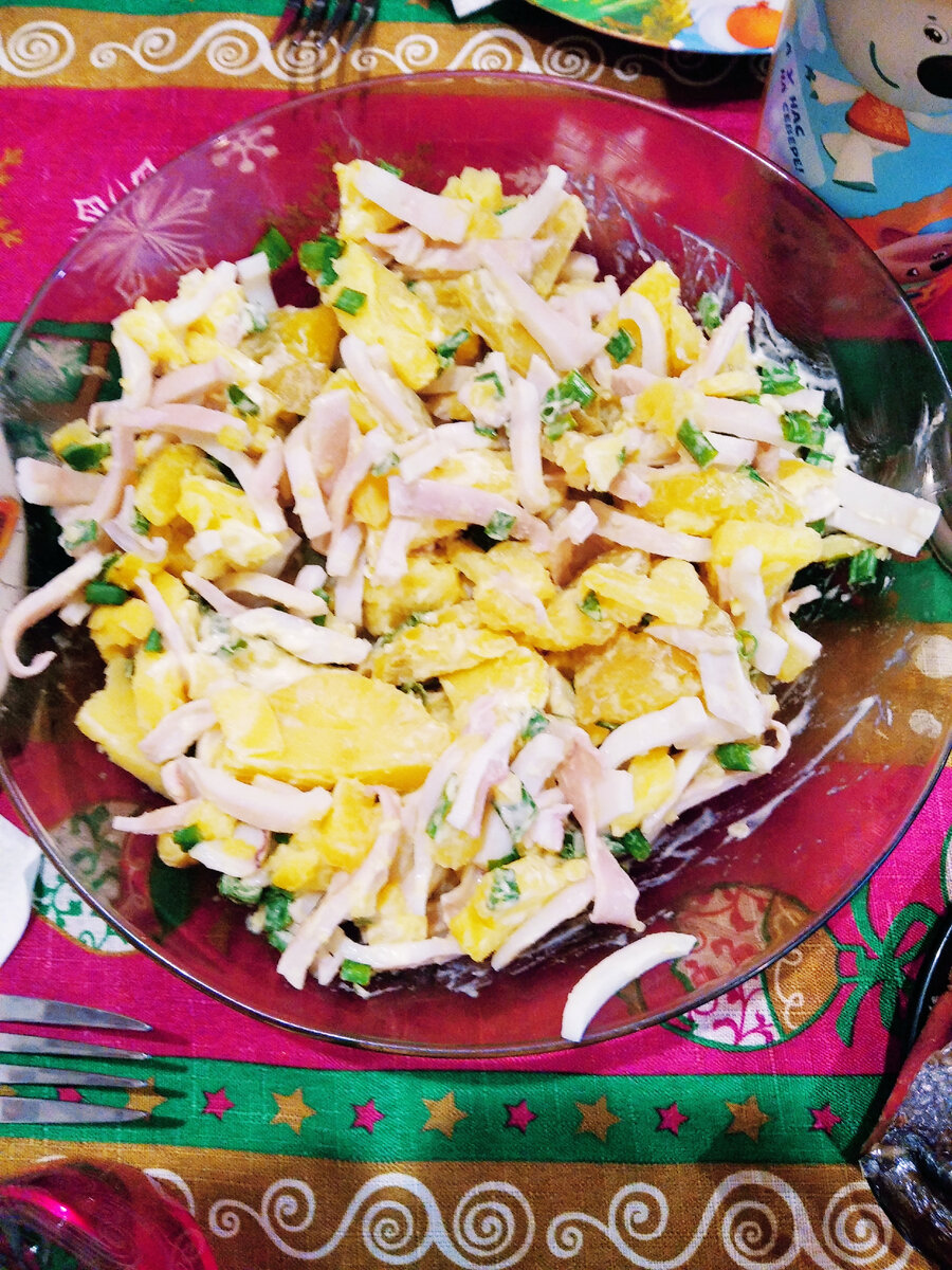 Вот ещё одна простая интерпретация салата с кальмарами 🥗 Муж правда сказал, что это полноценное второе блюдо 🤗 Так что решайте сами салат это или нет, но вкус мне определенно нравится 😋 Кальмары 3 шт Картофель 3 шт Зелёный лук 1 пучек Соль по вкусу Майонез по вкусу Кальмары очищаем от внутренностей, верхней шкурки, и внутренней прозрачной пленки. Хорошо промываем под проточной водой, отвариваем в подсоленной воде не более 3-5 минут после закипания, иначе будут резиновые (кальмары закидываем в кипящую воду). Откидываем на дуршлаг. Остывшие кальмары, осматриваем, если где то до варки недочистили самое время убрать лишнее 🧐 Нарезаем кальмары соломкой. Картофель хорошо промываем, отвариваем до готовности в мундире. Остужаем, очищаем и нарезаем соломкой. Соединяем с кальмарами. Добавляем мелко нарезанный зеленый лук. Солим 🧂 по вкусу. Добавляем майонез и перемешиваем. Бомбически вкусный и до невозможности простой салат с кальмарами готов!!! Приятного аппетита 🤗🥗😋 #сала