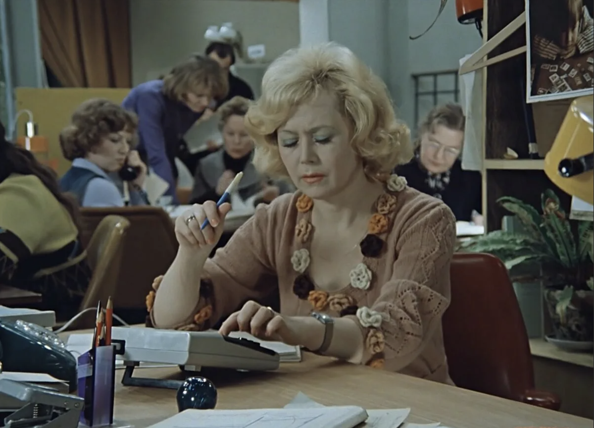 Этот отрыв от реальности побуждает её начать писать любовные письма Самохвалову и передавать эти письма через секретаршу Верочку. Прям как школьное время, когда дети передают записочки своим одноклассникам, помните такое? Наивная Ольга как будто бы не понимает, что эти письма легко могут стать достоянием общественности. Что мешало Ольге передавать письма лично из рук в руки, они же пересекались с Самохваловым в коридорах учреждения? Потеря реальности и инфантильность.
