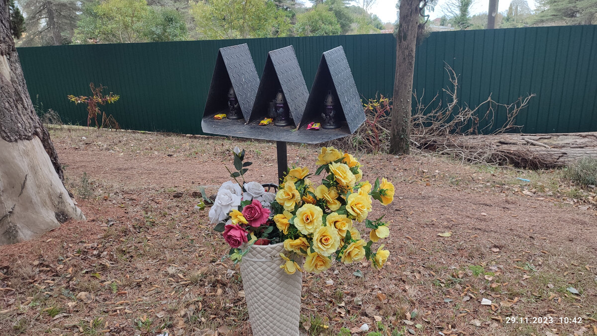Как мы отправились в это опасное путешествие? Да просто посмотрели по карте, что до поселка Алахадзы от нашего санатория 6,9 км. Ноги в руки и пошли! В сторону Пицунды мы уже гуляли. Там чуть поменьше расстояние. Уже тогда мы обратили внимание на вот такие железные сооружения вдоль дороги. В некоторых были искусственные цветы. Мы подозревали, что это скорбные знаки, но решили уточнить у местных. Таксист, который ждал клиентов у санатория, рассказал нам про поминальные столбики справа от Самшитовой рощи. Это была большая авария, где то в 80-х годах, погибли два брата абхазца и русский военный. В этих столбиках под крышей лежали блистеры от таблеток, пачки от сигарет. Я не думаю, что это мусор, который в изобилии красуется вдоль дорог, скорее, это приношение тем, кто сейчас на небесах. Самое интересное, что когда мы спросили об этих самых столбиках у местной женщины в другой день, она сказала, что эта трагедия произошла совсем недавно. Надписей на них никаких нет, поэтому приходится дово
