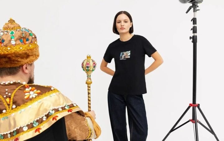 На футболках – узнаваемые сцены из фильма «Иван Васильевич меняет профессию». Вроде той, где главный герой во время царского застолья интересуется: «За чей счёт банкет?». Мало кто знает, но в первоначальной версии на него был такой ответ: «Народ, батюшка, народ». Для белой футболки выбрана цитата авантюриста Жоржа: «Это я удачно зашёл!», который в альтернативном финале оказался в неловко