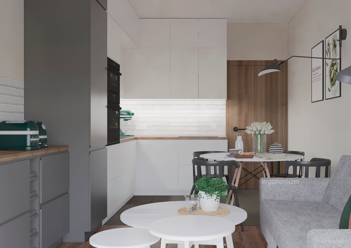 Каждый, кто хоть раз планировал ремонт на кухне, уже читал про кухонный рабочий треугольник: холодильник-мойка-плита. Именно в таком контексте преподносят эту концепцию большинство авторов и копирайтеров. Хотя многие дизайнеры интерьера уже не раз намекали, что при нынешнем количестве техники на кухне нельзя вот так просто применять правило “холодильник-мойка-плита”. Концепция «рабочего треугольника» была изобретена ради того, что бы хозяйка не наматывала марафоны. Так что отчасти, она может быть полезна для больших кухонь. А теперь вернемся к наше суровой реальности: часто ли размеры современных российских кухонь угрожают нам этими самыми марафонами? Хорошо если получится выдержать минимальное расстояние между вершинами треугольника (1,2 метра). Допустим мы забыли о расстояниях и поговорим о вершинах. Давайте выкинем отсюда плиту. Например, наш креативный архитектор решил, что готовить лучше на открытом воздухе, и отправил плиту на балкон. Сомневаюсь, что вас устроит тако