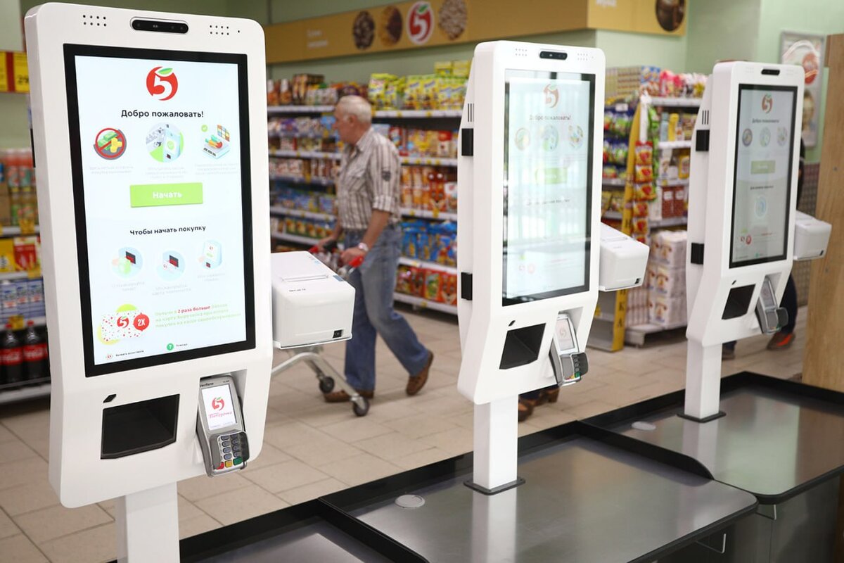Прямо в моем доме находятся продуктовые магазины: Пятерочка, Магнит, а напротив Верный. Нет желания идти туда, где будет большая очередь на кассе, а значит лучше пойти в Пятерочку, ведь там стоят кассы самообслуживания (КС), что ускоряет процесс покупки.