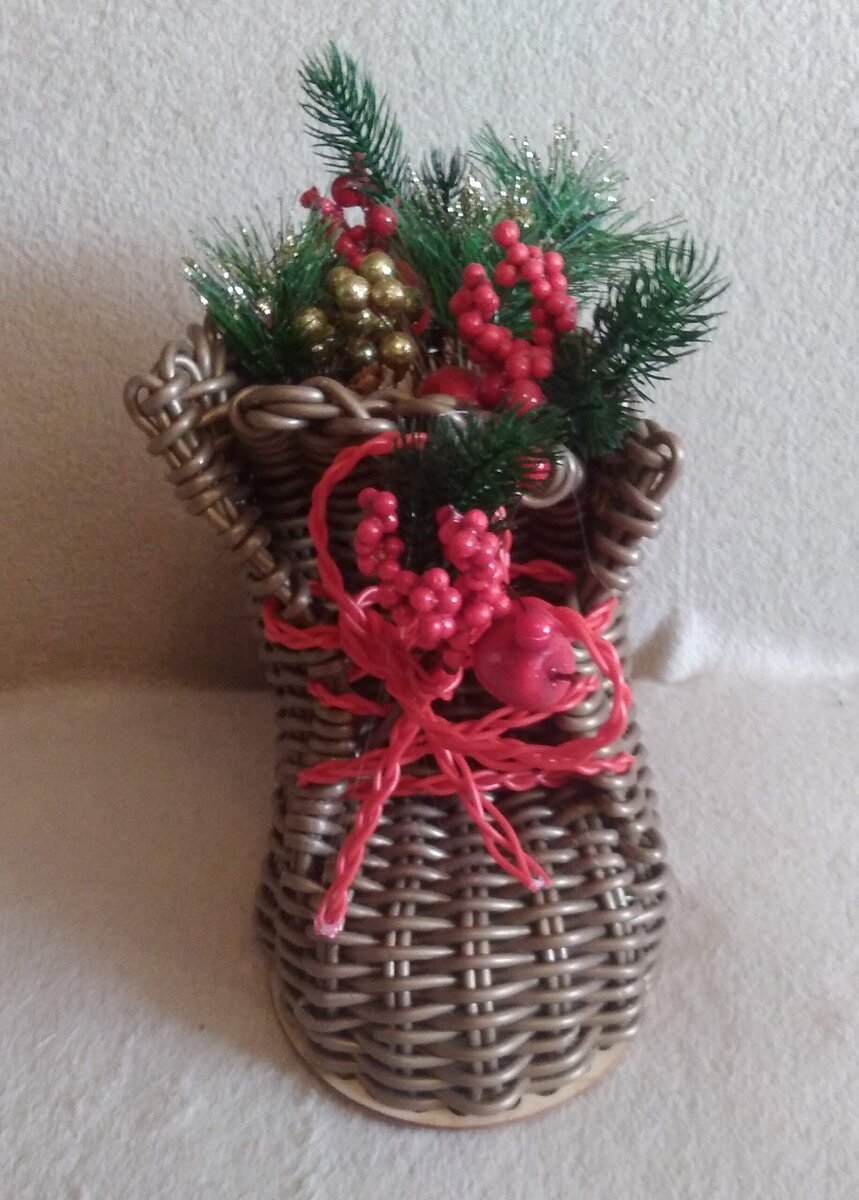 Здравствуйте Дорогие Мои Читатели ! Всех с наступившим Новым 2024 годом ! Всем Удачи и Процветания в Новом году ! Мои десять праздничных дней прошли в творческих трудах. Так как я пробую плести по новому, то прямо с первого раза получается сплести далеко Не все. Чему - то учусь по видео на Ютубе. А что - то придумываю сама, делаю по своему. Вроде смотришь, все понятно, начинаешь плести, или не получается, или криво, косо. Приходится расплетать и плести по новой. Или сплетешь готовое, или рисунок, или сочетание цвета не понравилось, расплетаешь и другое подбираешь. Бывало и до 4-6 часов ночи плела, так это затягивает, благо не на работу... Ну а теперь покажу что новенькое у меня получилось. Увидела я как - то фото ботиночка и сапожка из бумажной лозы. Мне они так понравились, что я уже представляла их как декор на своем участке, где ни будь на полочке, в купе с фонарями и корзинками. И чтобы в них можно было горшочек с какими ни будь с цветами вставить. А пока вставила новогодний д