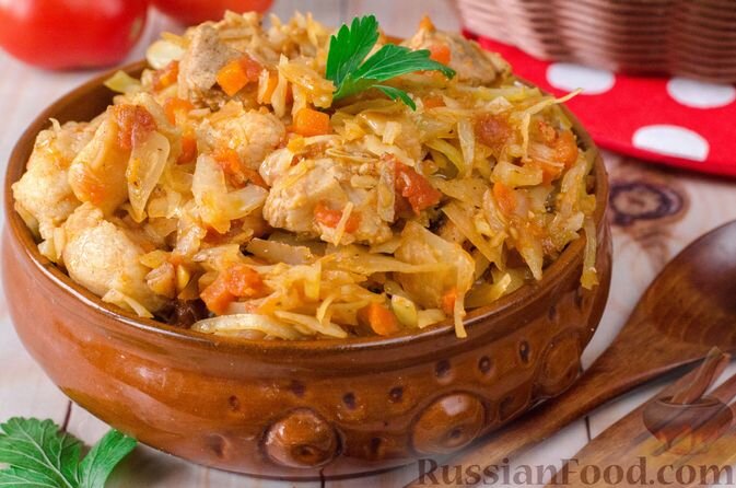 Капуста со свининой. Картошка с мясом и грибами. Гороховый суп с чесночными рулетиками. Запеканка из макарон с рыбой. Бездрожжевые пирожки с фаршем. Тушёная картошка с мясом, грибами и сметаной. Сытное и очень вкусное блюдо. Если в конце приготовления картофель со свининой и шампиньонами сдобрить сметаной, жаркое получится вкуснее. Сметана превращается в нежнейший соус с лёгкой кислинкой и сливочным послевкусием и прекрасно объединяет все компоненты в единое блюдо. Интересный гороховый суп с чесночными рулетиками. Суп готовится с кусочками обжаренного куриного филе и дополняется ароматными рулетиками из яичного теста, смазанного чесночным маслом. Получается очень аппетитно. Норвежская запеканка из макарон с белой рыбой. Оригинальное блюдо из простых продуктов. Перед запеканием в духовке отварные макароны и рыба перемешиваются с молочным соусом и взбитыми яичными белками, а сверху посыпаются панировочными сухарями. Пирожки с мясом, из рубленого теста. Песочное рубленое тесто на сметане