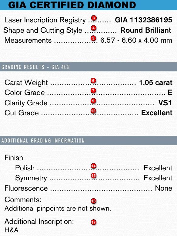 Просмотр надписи позволяет вам сопоставить ее с цифрами в фактическом отчете. Это доказывает, что бриллиант, на который вы смотрите, является бриллиантом, указанным в отчёте.