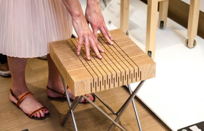 Древесина, в принципе, материал довольно жесткий. Конечно, ее не сравнишь с металлом или камнем. Но если вам придется долго сидеть на деревянном табурете, вы неизбежно почувствуете определенный дискомфорт. Однако, как оказалось, древесину вполне можно сделать эластичной. То есть приятной для сидения на ней. https://allremont59.ru/otdelochnye-materialy-iz-dereva-v-interere/ Эластичная древесина: где родилась эта идея и как она была реализована Эластичная древесина стала результатом идеи, реализованной голландским дизайнером Каролин Ларо. То есть именно она нашла решение, позволяющее придать этому твердому материалу мягкость, податливость и пружинистость. В результате довольно длительных размышлений она пришла к выводу, что этого можно достичь, применив особую распиловку. Причем по своему внешнему виду такая распиловка напоминает бумажный лист, сложенный гармошкой. Читайте также: Гениальная мебель-трансформер, легко встраиваемая в мини-квартиру Как оказалось, твердая древесина способна п
