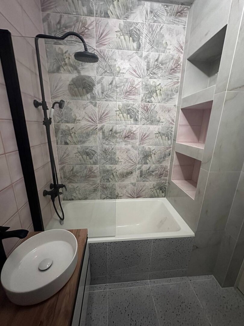 Плитка с геометрическими узорами и линиями придает ванной современный и структурированный вид. Эти узоры могут быть абстрактными или симметричными, и идеально вписываются в минималистичные или современные интерьеры. Прямоугольные, шестиугольные или даже треугольные плитки с геометрическими узорами легко комбинировать, создавая уникальный визуальный эффект.