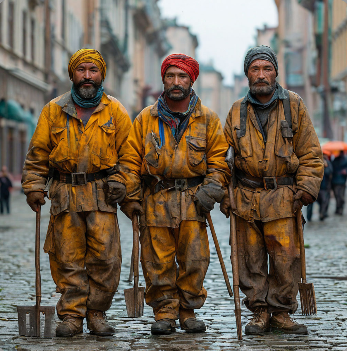 Не знаю, как сейчас, но в советское время была популярной считалочка-игра, суть которой заключалась в том, что игроки начинали бегать и прыгать вокруг водящего, который произносил «море волнуется — раз, море волнуется — два, море волнуется — три, морская фигура, на месте замри!», и как только он давал команду «Замри!» — все останавливались, замирали неподвижно. Сегодня, 13 марта, глядя в окно наблюдал гастарбайтеров, которые, судя по всему играли именно в «море волнуется — раз». Они замерли и так стояли неподвижно, все время… Днём я работал дома за компьютером и периодически подходил к окну, чтобы открыть или закрыть форточку и всякий раз наблюдал одну и ту же картину - несколько гастарбайтеров стояли неподвижно то тут. то там, в разных уголках двора моего дома, из-за чего не представлялось возможным понять, что именно они делают, в чем заключается их работа. Неподалёку брошенные велосипеды, гастарбайтеры в униформе, что-то рядом, пока они были далеко, то нельзя было разглядеть что име