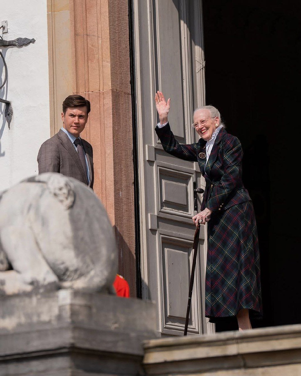 🇩🇰 А это уже чествование сегодняшней датской именинницы - королевы Маргрете 👽 смотрели выступление на крыльце дворца и отправились на семейный обед. Состав тот же, что и вчера - семья Фредерика, старшие внуки Николай и Феликс, и сестры - Анна-Мария и Бенедикта