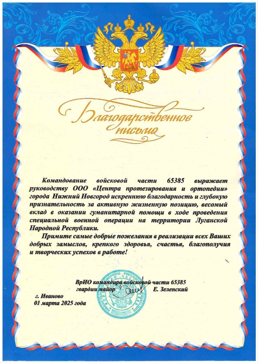 🪖Поддержка наших героев В феврале 2025 года "Центр протезирования и ортопедии" в городе Иванове участвовал в оказании гуманитарной помощи бойцам 98-ой гвардейской воздушно-десантной дивизии. ⛑️В помощь от Центра военнослужащие получили сантехническое оборудование, моющие средства, рабочий инструмент, необходимый дислоцирующемуся в городе полку, а также оборудование и укрывной защитный материал для наших бойцов на передовой, который поможет им успешно двигаться вперед, минимизируя риски. 📜В ответ от командования войсковой части в адрес нашей организации поступило «Благодарственное письмо» с выражением искренней признательности за оказанную нами поддержку. 🫡Понимание важности проделанной работы вдохновляет нас на достижение новых результатов в основной деятельности, целью которой является помощь тем, кто ценой своей жизни и здоровья защищает рубежи Родины. 👥️Мы верим, что каждый из нас может внести свой вклад в общее дело для приближения такой долгожданной Победы!