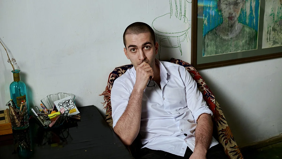 Коля Степанян в мастерской художника Ваграма Карагуляна. Фото: Ната Брэттэлл