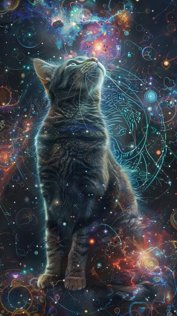Создано на основе запроса: The space cat surrounded by floating holograms of ancient feline civilizations, cosmic patterns glowing around --- Автоперевод: Космическая кошка окружена плавающими голограммами древних кошачьих цивилизаций, космические узоры, светящиеся вокруг Классно вышло? 🤔 https://dzen.ru/id/65c0c65c86e4f837c27b24d7 #ИИ #AI #нейросеть #midjourney #art