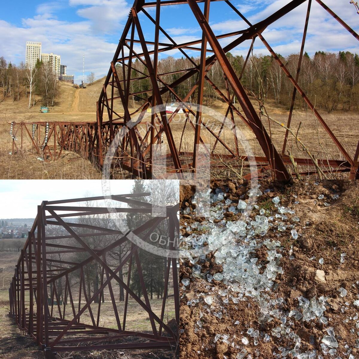 Вчера три старые опоры ЛЭП в районе горнолыжки были свалены и демонтируются