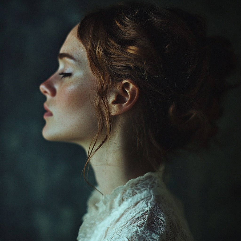 Создано на основе запроса: fully side on profile image of a woman only showing head and shoulders