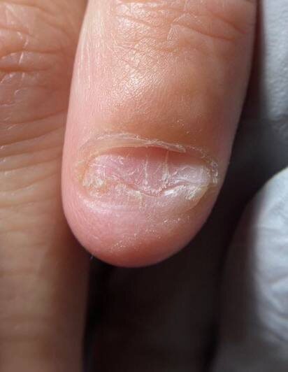Пока сижу наполняю презентацию для семинара по онихолизису разными примерами, нашла такое фото. Решила вам подкинуть задачку, подумать, что послужило причиной такого состояния