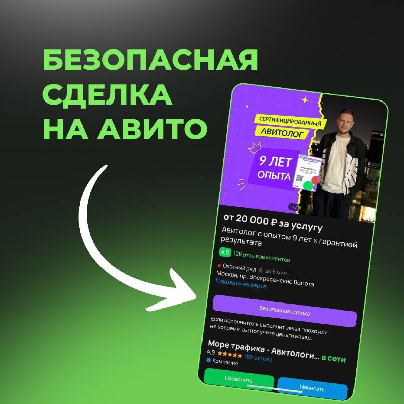 Безопасная сделка Привет, коллеги. Сегодня рассказываю про новый функционал Авито Услуг😎 Безопасная сделка - механизм, при котором площадка выступает гарантом платежа. Как на маркетплейсах, только в Услугах) Как это работает для потенциального заказчика: - нажимаете на кнопку «Безопасная сделка»; - в открывшемся окне описываете задачу и желаемый срок исполнения; - отправляете заявку исполнителю. Исполнитель, в свою очередь: - согласовывает все детали с заказчиком в чате или по телефону; - фиксирует финальное предложение и договорённости в чате. Это нужно, чтобы исполнитель не мог завысить цену или изменить наполнение услуги постфактум; - выставляет счёт на оплату прямо на площадке Авито. На мой взгляд, очень удобно. В Услугах есть такая проблема: цена в объявлении одна, по телефону - вторая, по факту - третья. Данный функционал позволит обезопасить заказчиков от недобросовестных исполнителей. Кстати, мы, как проверенный исполнитель, участвуем в тесте «безопасной сделки». Став