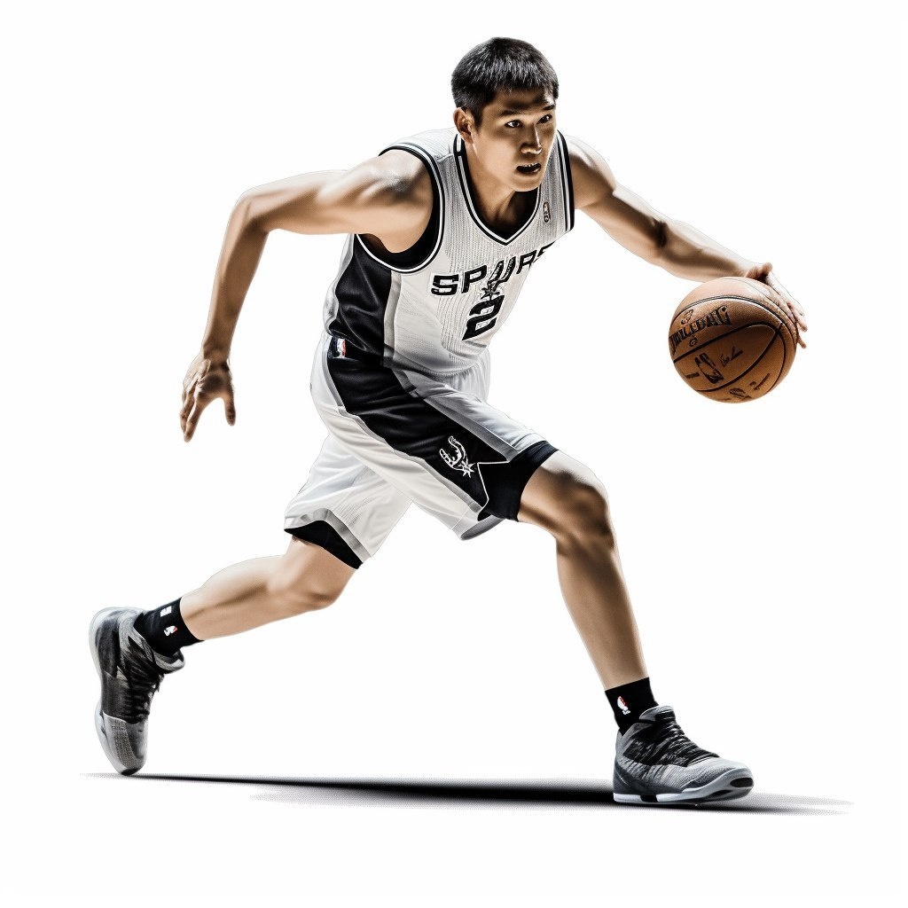 Создано на основе запроса: A Korean male basketball player dribbling a basketball against a slightly dark white background. He is wearing the San Antonio Spurs white home jersey with the number 2 and the team's logo prominently displayed. The player has an athletic build and is captured in dynamic motion, showing his skillful ball-handling as he drives forward. He's wearing white and black basketball shoes with black socks and black compression shorts visible beneath his white uniform shorts. His focused expression shows the intensity and concentration of professional basketball. The clean, minimalist setting with the slightly darkened white background emphasizes his athletic form and the movement of the game, creating a professional sports portrait that highlights his skills and physicality --- Автоперевод: Корейский баскетболист мужского пола, дрибирующий баскетбол на слегка темно -белом фоне. Красиво получилось? 🤔 https://dzen.ru/id/65c0c65c86e4f837c27b24d7 #ИИ #AI #не