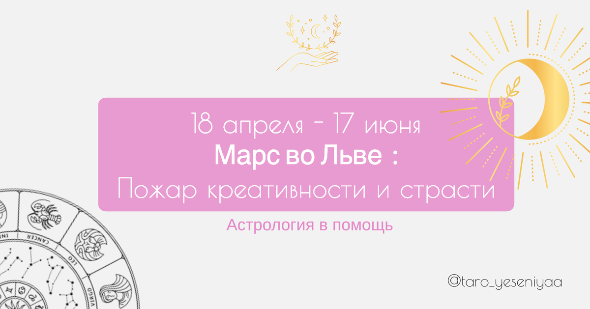 🔥С 18 апреля до 17 июня 2023 года Марс будет находиться в знаке Льва, и это обещает быть периодом невероятной энергии, страсти и креативности!🔥 🚀Марс — это планета действия, воли и энергии. Когда он переходит в знак Льва, мы можем ожидать усиление стремления выделяться и быть в центре внимания. Лев — это знак, ассоциирующийся с креативностью, щедростью и страстью. В этот период мы можем почувствовать, как наши внутренние ресурсы наполняются энергией, что способствует новым начинаниям и смелым решениям. 1. Творчество и самовыражение: 🎨Этот период — идеальное время для всех творческих личностей! Если вы художник, музыкант или писатель, используйте эту мощную энергию для создания чего-то нового. Ваши идеи будут яркими и вдохновляющими, так что не бойтесь экспериментировать и выходить за рамки привычного. 🎨 2. Лидерство: 👑Марс в Льве подчеркивает ваши лидерские качества. Это время, когда вы можете взять на себя ответственность и вести за собой других. Ваша уверенность и хар