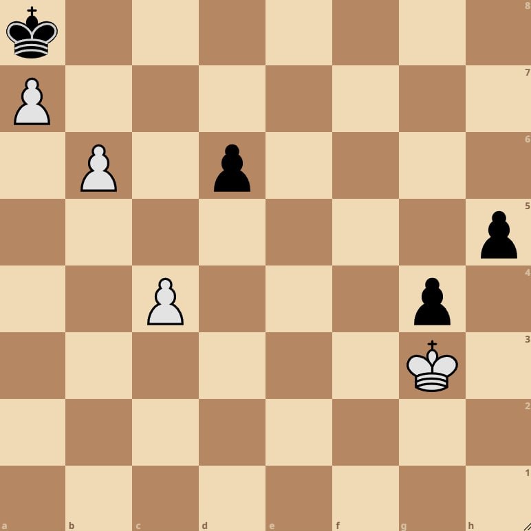 🤯 Задача дня. Этюд Г. Рейхгельма, 1900 г. Сочетание мотивов - отвлечение и завлечение, можно увидеть в этом красивом этюде. При нормальных обстоятельствах нельзя было бы увести белого короля от связанных пешек g4 и h5, так как это бы грозило бы продвижением их к полям превращения. Однако здесь оказывается возможным создание более сильной угрозы. Ход белых - выигрыш Уровень - продвинутый