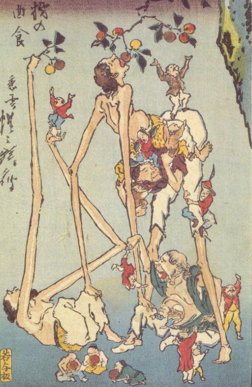 🤭Тэнага и Асинага (手長, 足長) — легендарные великаны, фигурирующие в мифах и народных сказках Японии