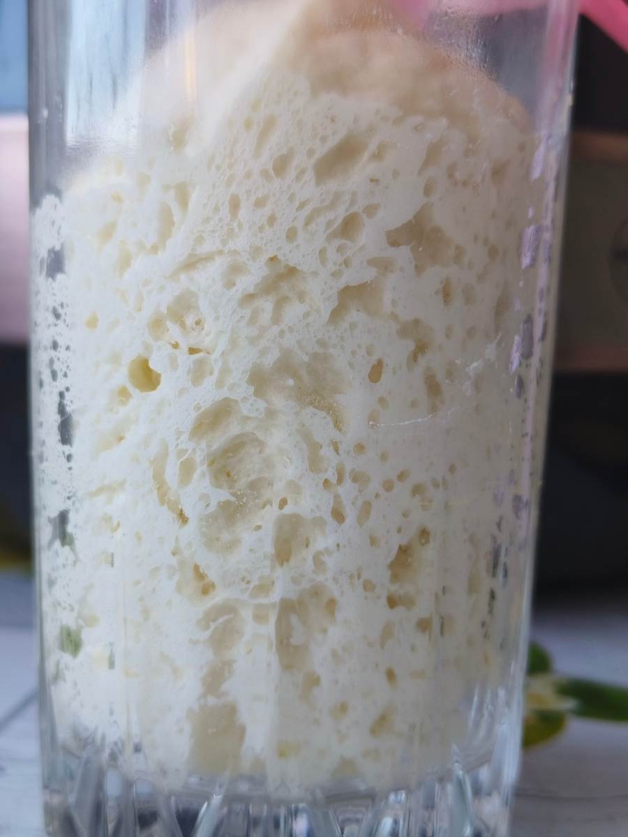 Выведение закваски Левито Мадре. Lievito Madre (итал. «материнская закваска») — это традиционная итальянская натуральная закваска, используемая для приготовления сладкой сдобной выпечки, такой как панеттоне, коломба и пандоро. Она отличается от обычной хлебной закваски составом, методом поддержания и особыми свойствами, которые делают её незаменимой в классической итальянской кондитерской традиции. 🌾 Особенности Lievito Madre: 1.Состав и основа: — Готовится из пшеничной муки, воды и сладких ягод , например винограда иногда с добавлением меда. — Содержит симбиоз дрожжей (чаще Saccharomyces cerevisiae) и молочнокислых бактерий (LAB), которые придают выпечке сложный аромат. 🌾 2. Поддержание: — Регулярно «подкармливается» мукой и водой (часто в пропорции 1:1:0,5). — Хранится в прохладном месте (например, в холодильнике) желательно при температуре 16-18 градусов 🌾Как используют Lievito Madre? 1. Многоэтапное брожение: — Закваску «оживляют» за 2–3 дня до вы