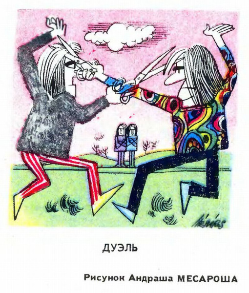 «Старики» (по распространённому тогда среди советской молодёжи обращению) 1960-х и 1970-х своё неприятие окружающей действительности выражали не только через бороды, о чём здесь уже подробно было сказано но и через длинные волосы. Поэтому на карикатурах тех лет доставалось и «бородатым», и «патлатым». В основном, это были довольно мягкие юмористические рисунки, хотя попадалась и более острая сатира.( Свернуть ) Чем, собственно, были плохи мужские волосы до плеч, с точки зрения тогдашних карикатуристов?
